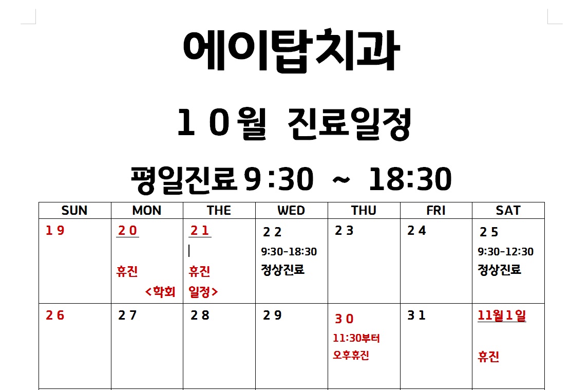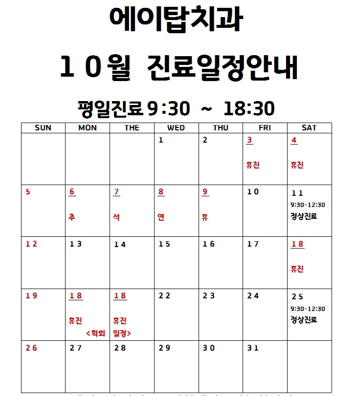 2025년 10월 진료일정 및 휴진안내(학회일정 참고)